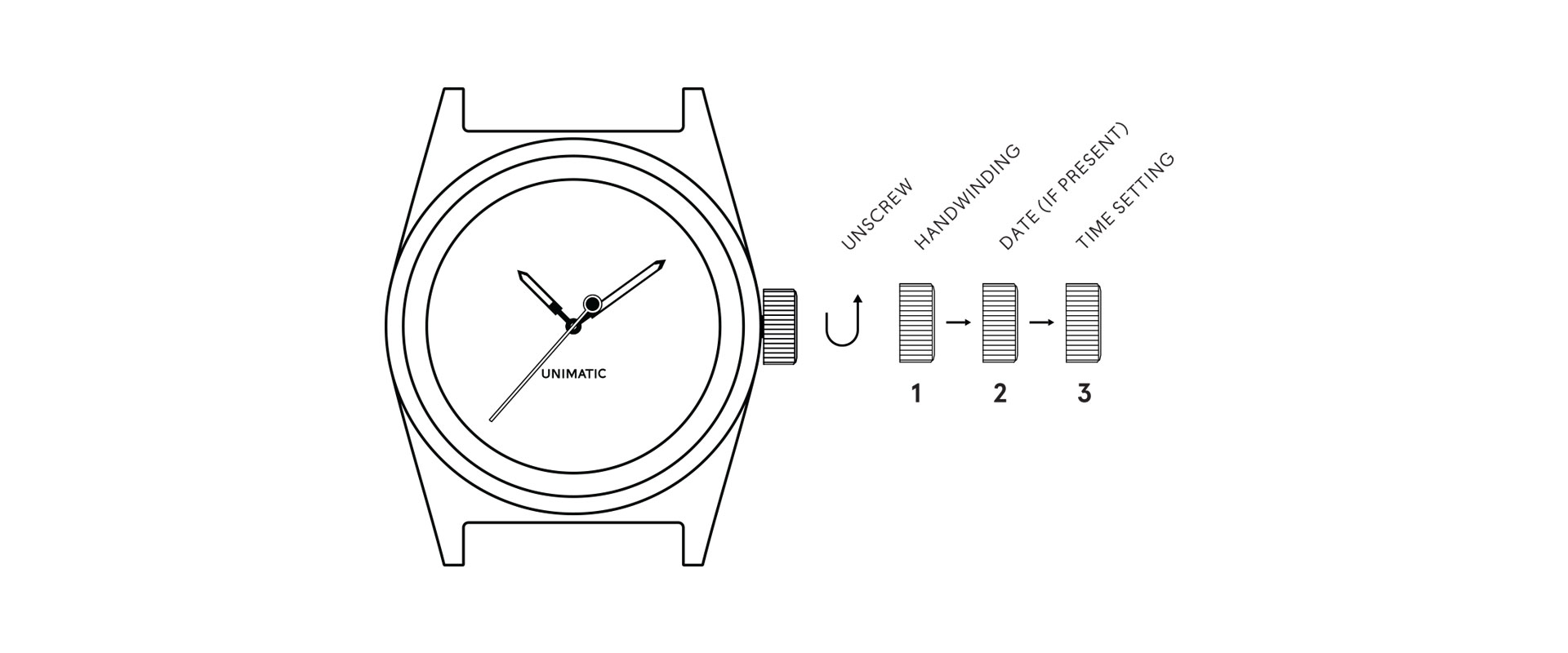 Your watch is fitted with a screw-down crown which must be unscrewed by turning anti-clockwise before setting time.