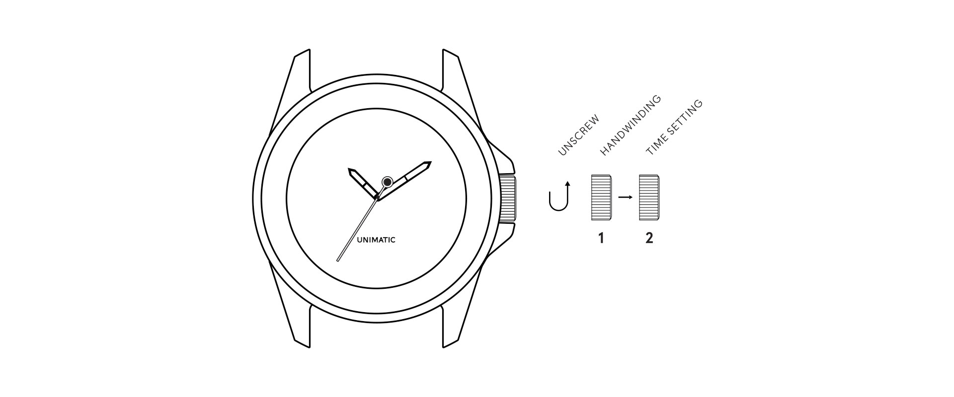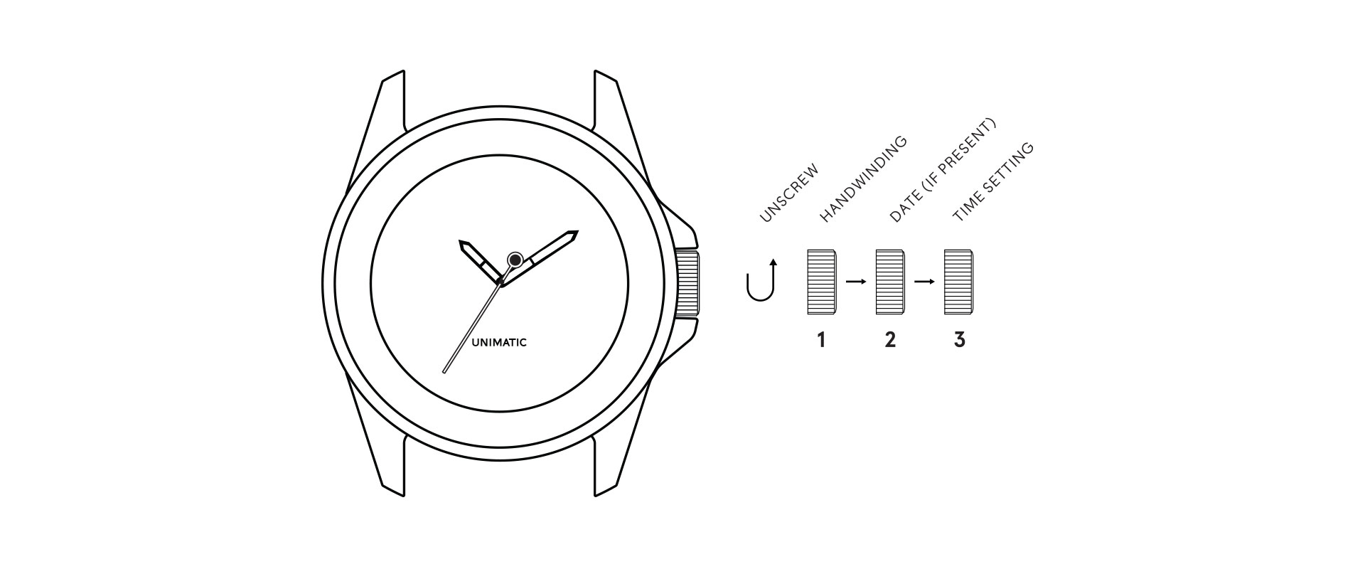 Your watch is fitted with a screw-down crown which must be unscrewed by turning anti-clockwise before setting time.
