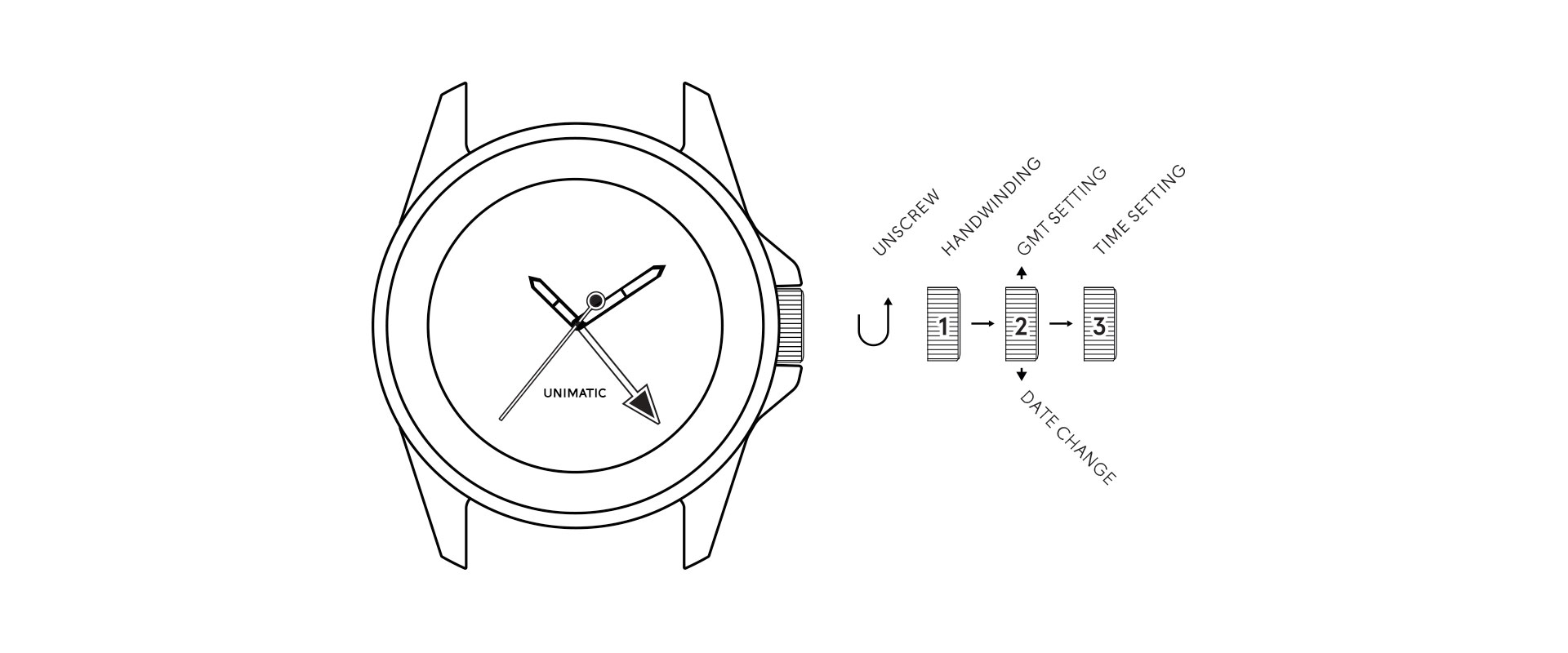 Your watch is fitted with a screw-down crown which must be unscrewed by turning anti-clockwise before setting time.